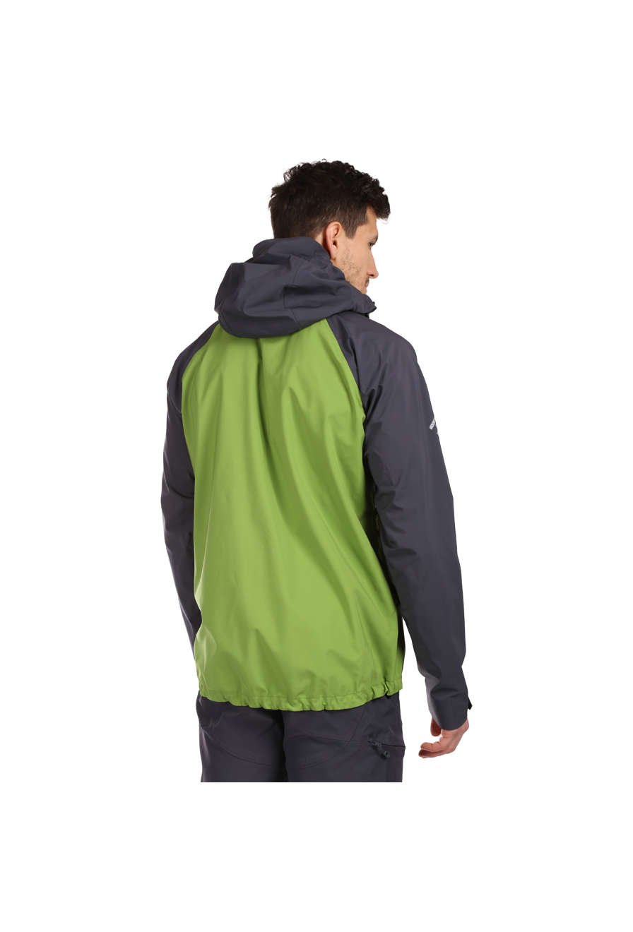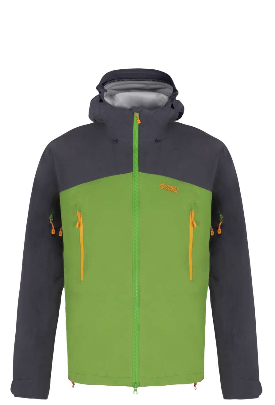 The jacket features a central two-way zipper with an internal protective flap. The pocket system includes two large front pockets that can be used with a climbing harness and one internal zipped pocket. The shaped front hem and extended back panel provide comfort during any movement. The anatomically shaped sleeves come with adjustable cuffs.