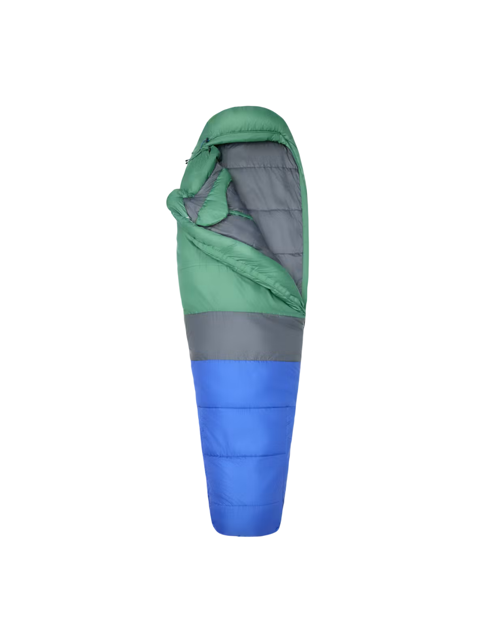 Want to get aspiring adventurers in the outdoors? Set them up for success with a bag that measures up to your loftiest aspirations for comfort, warmth, and all-weather resilience. This super-lofty synthetic mummy bag is made of 100% recycled fabrics and fill that continues to keep kids warm even if water creeps in. Light, plush, and packable, it's their home away from home whether they're taking it out of their packs on the trail or pulling it out of your trunk at the campground. The full-length left-side anti-snag zipper and additional short-right zipper let you control your comfort with precision and a cozy blanket-like feel—while the ISO tested temperature-rating means you can rest assured that your bag will hold up when temperatures hit freezing. An internal stash pocket is ideal for your contact lenses or headlamp, while the included compression sack means you can cinch, stuff, and head out for the week or the weekend.